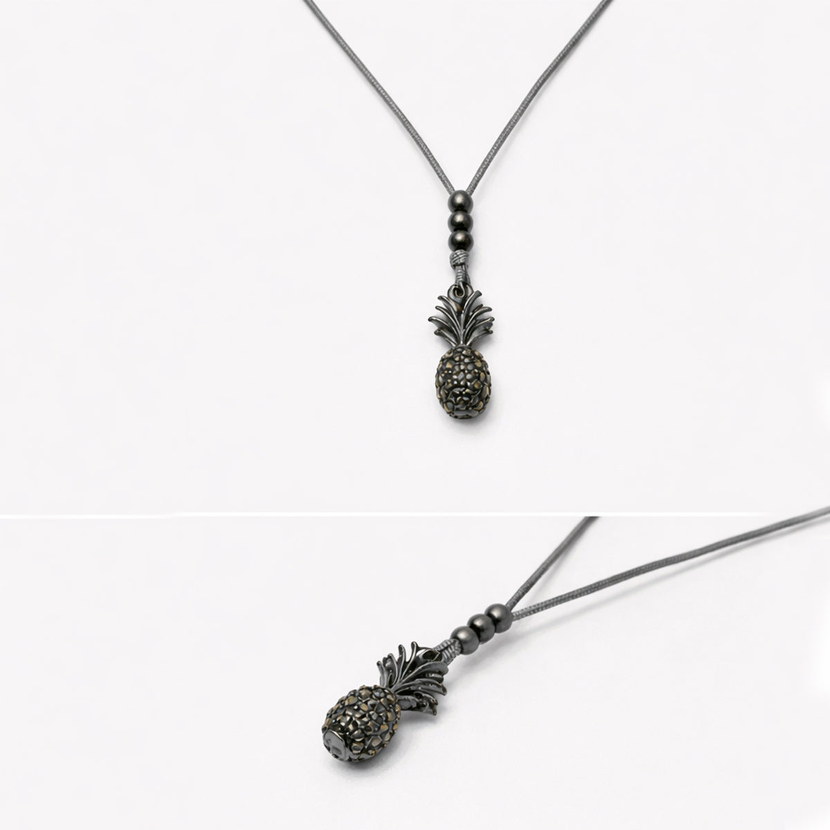 Collar de hilo con dije de plata .925 con acabado de plata .925 con incrustaciones de piritas.