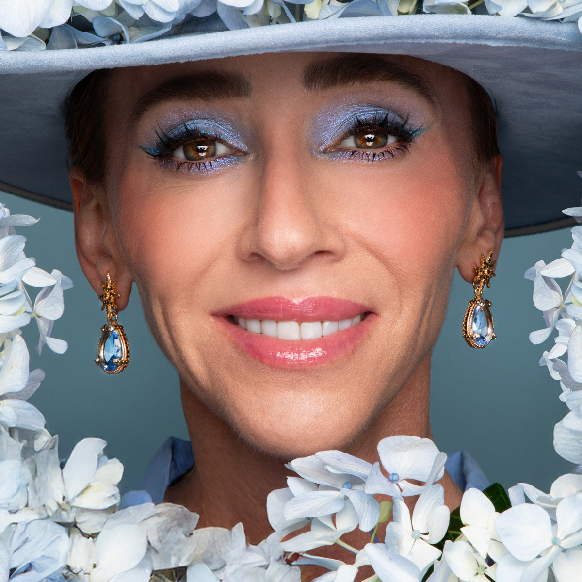 Leather hexagon with a kit of 7 pairs of removable crystals, a .925 silver bezel/drop holder with a side clasp, and removable .925 silver Polaris earrings with 14k gold plating.