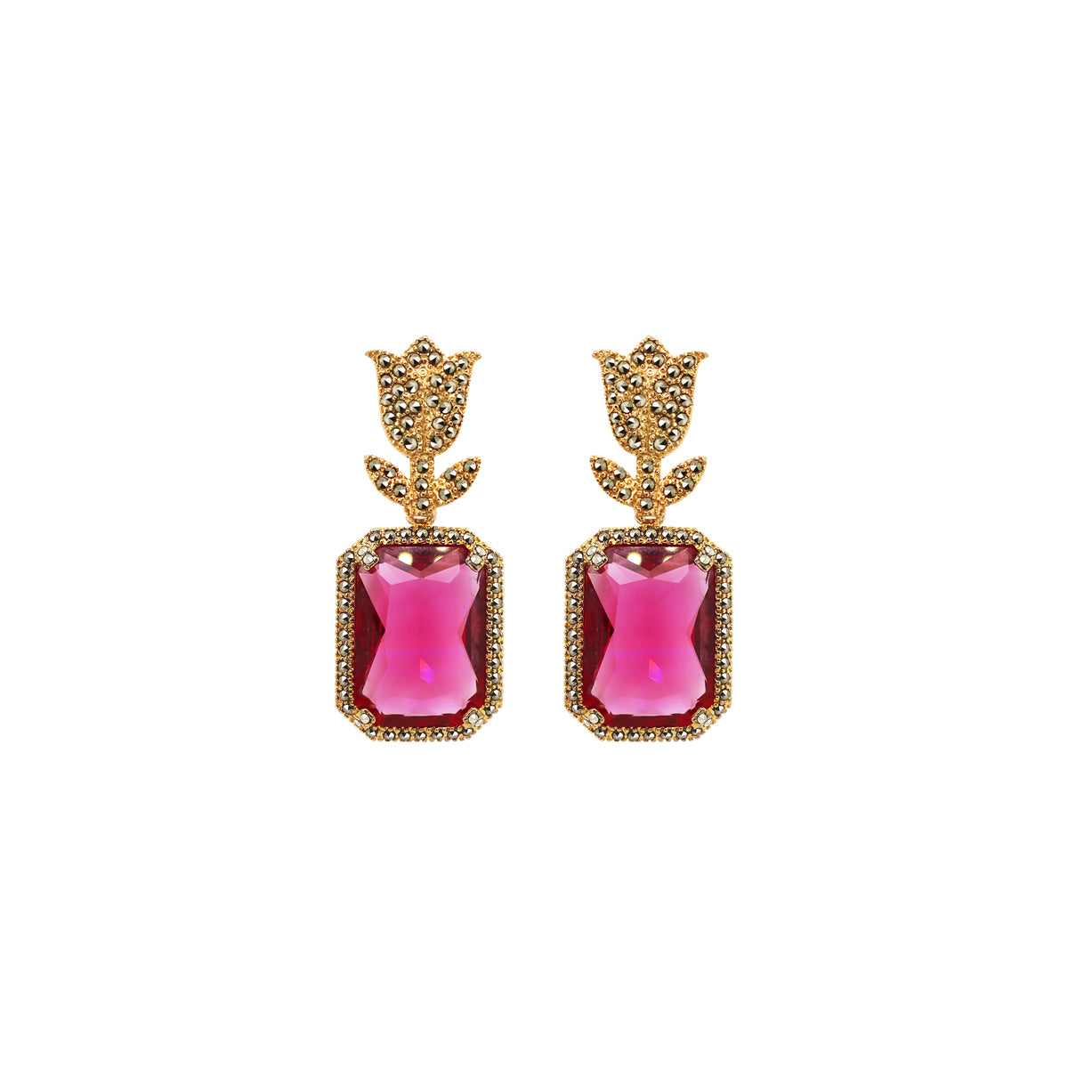 Arete Tulip gold plata .925 con baño de oro de 14KT e incrustación de piritas mas drop trapez jade azul tallado plata .925 con baño de oro de 14 KT, drop fut gold capuchón plata .925 con baño de oro de 14KT e incrustacón de piritas con cristal facetado color amarillo y drop square rosa plata .925 con baño de oro de 14KT e incrustación de piritas.