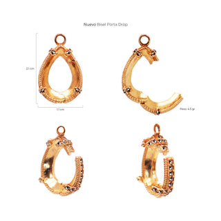 Hexágono de piel con kit de 7 pares de cristales desmontables, un Bisel/Portadrop de plata .925 con broche lateral y aretes de Polaris de plata .925 con baño de oro de 14k desmontables.